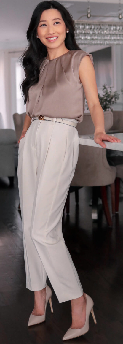 beige blouse for office shirts with light cream trouser and pencil heels accessorized with a white belt and stud earrings by Febin Bijoy September 7, 2023, 6:34 am beige blouse for office shirts with light cream trouser and pencil heels accessorized with a white belt and stud earrings
