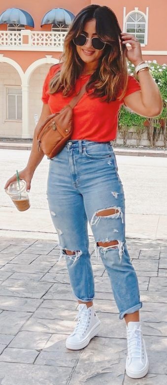 ripped denim bottom with an orange top wearing a sneakers and a cross body bag by Trisha Dhera August 3, 2023, 8:34 am ripped denim bottom with an orange top wearing a sneakers and a cross body bag